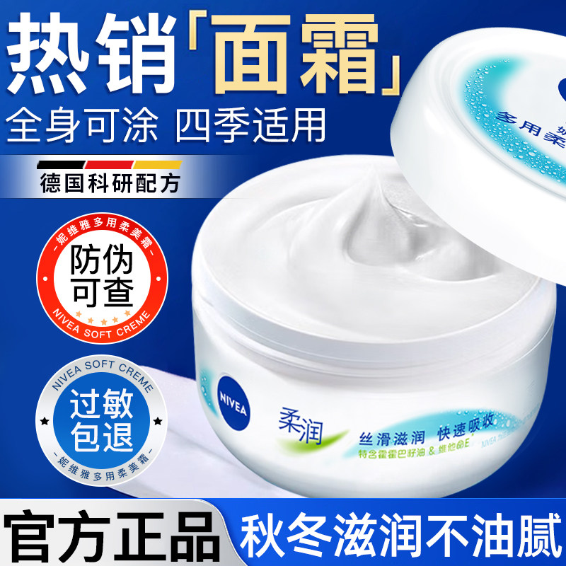 妮维雅柔美润肤霜补水保湿滋润秋冬女学生男乳液水乳面霜200ml