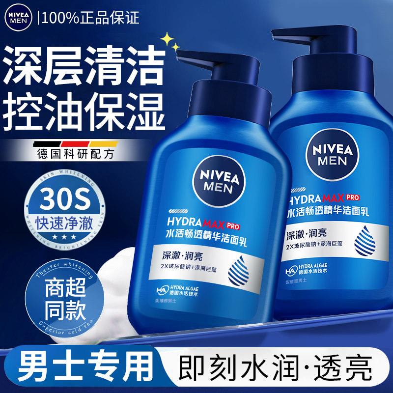 妮维雅男士洗面奶水活多效洁面乳控油深层清洁洗面清爽控油不紧绷