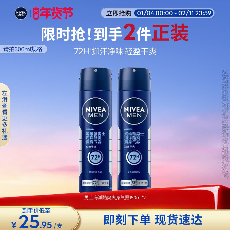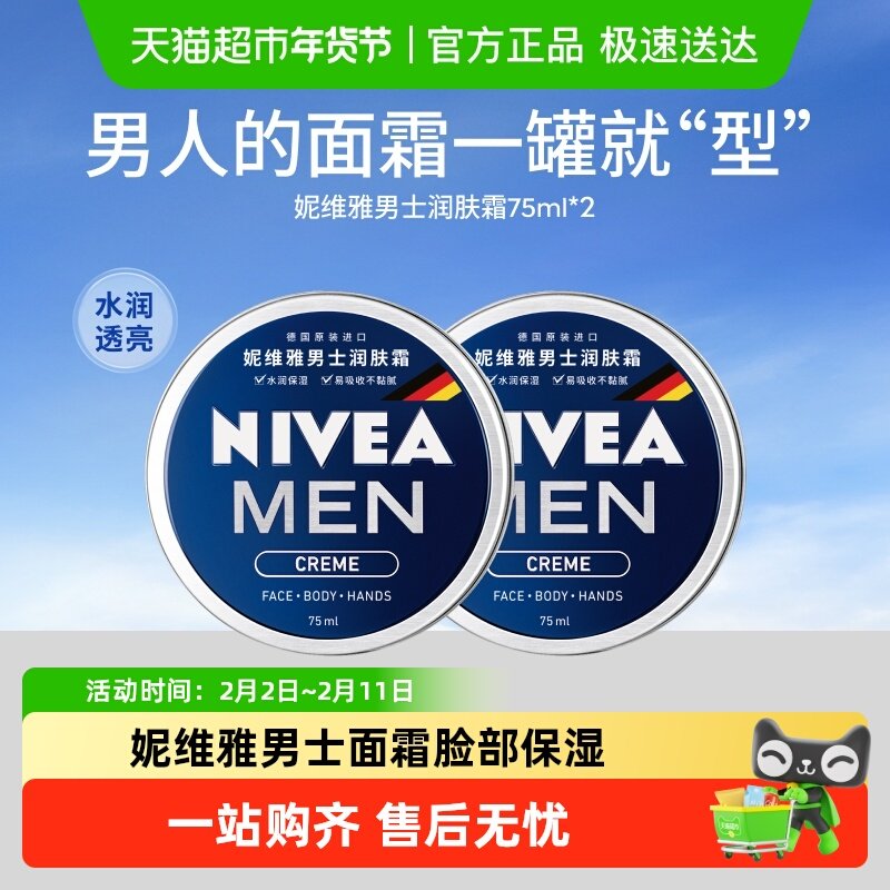 妮维雅男士保湿面霜持久保湿时刻清爽一罐多用健康亲肤滋润75ml*2