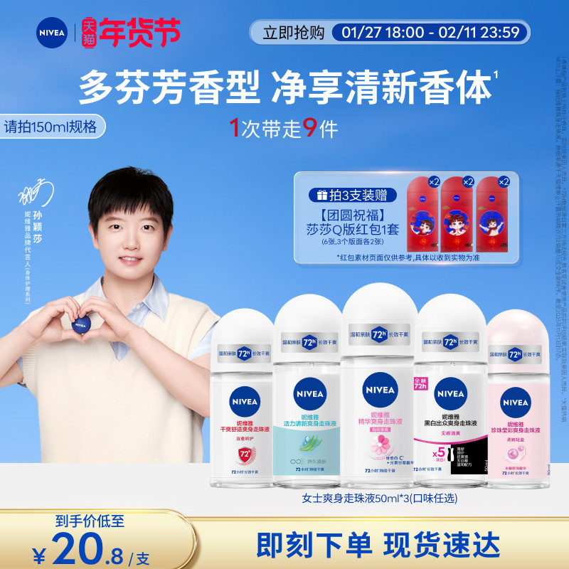 【孙颖莎同款】妮维雅腋下滚珠女男士止汗去异味干爽走珠液香正品