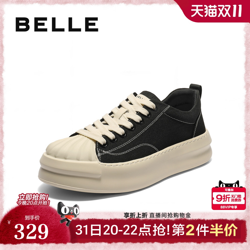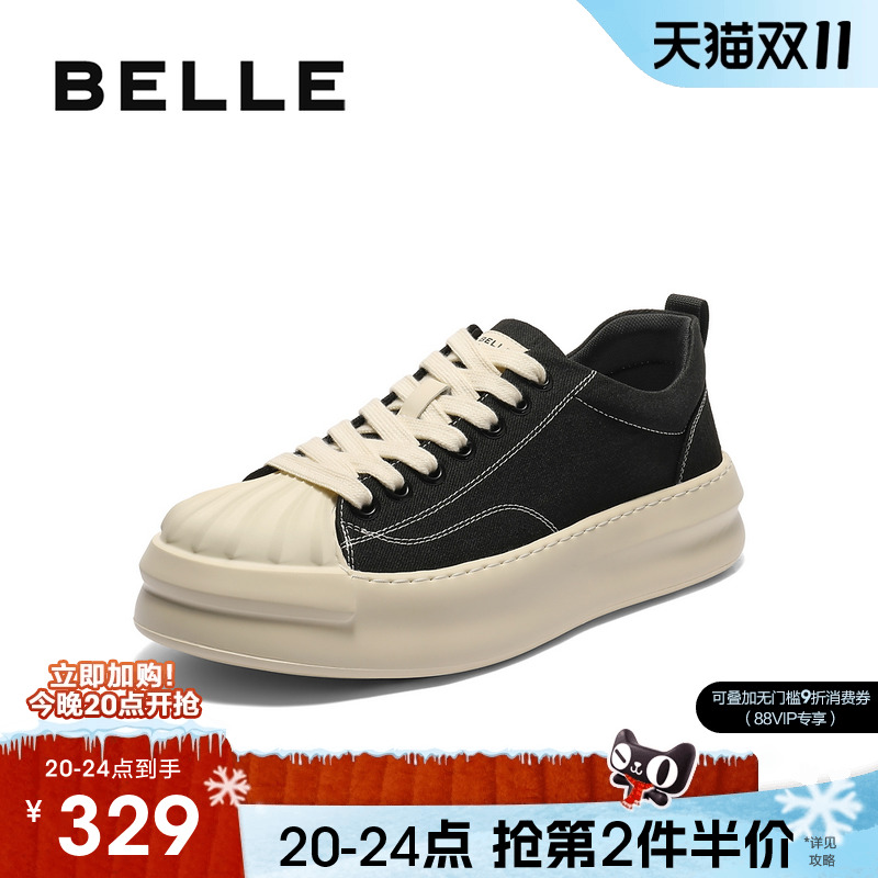 百丽男士贝壳头厚底增高板鞋男25秋季新款软底休闲帆布鞋A2128CM5