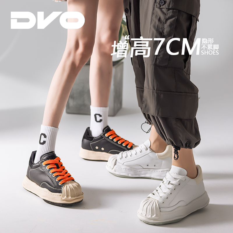 DVO【贝壳头】7CM隐形增高鞋男士溶解情侣厚底休闲百搭板鞋贝壳鞋