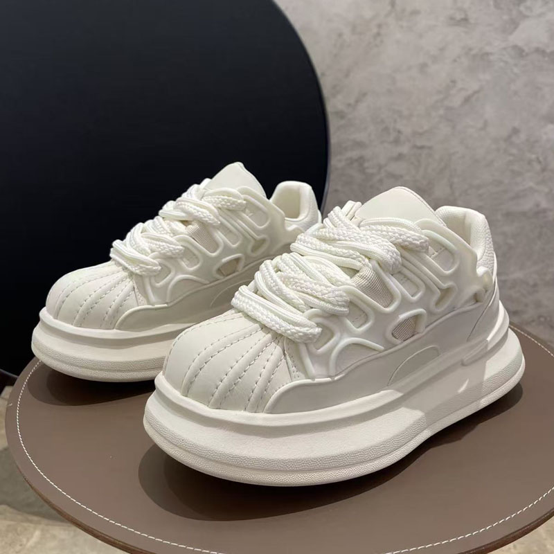 板鞋男款2025新款贝壳头面包鞋轻便厚底增高鞋百搭低帮系带休闲鞋