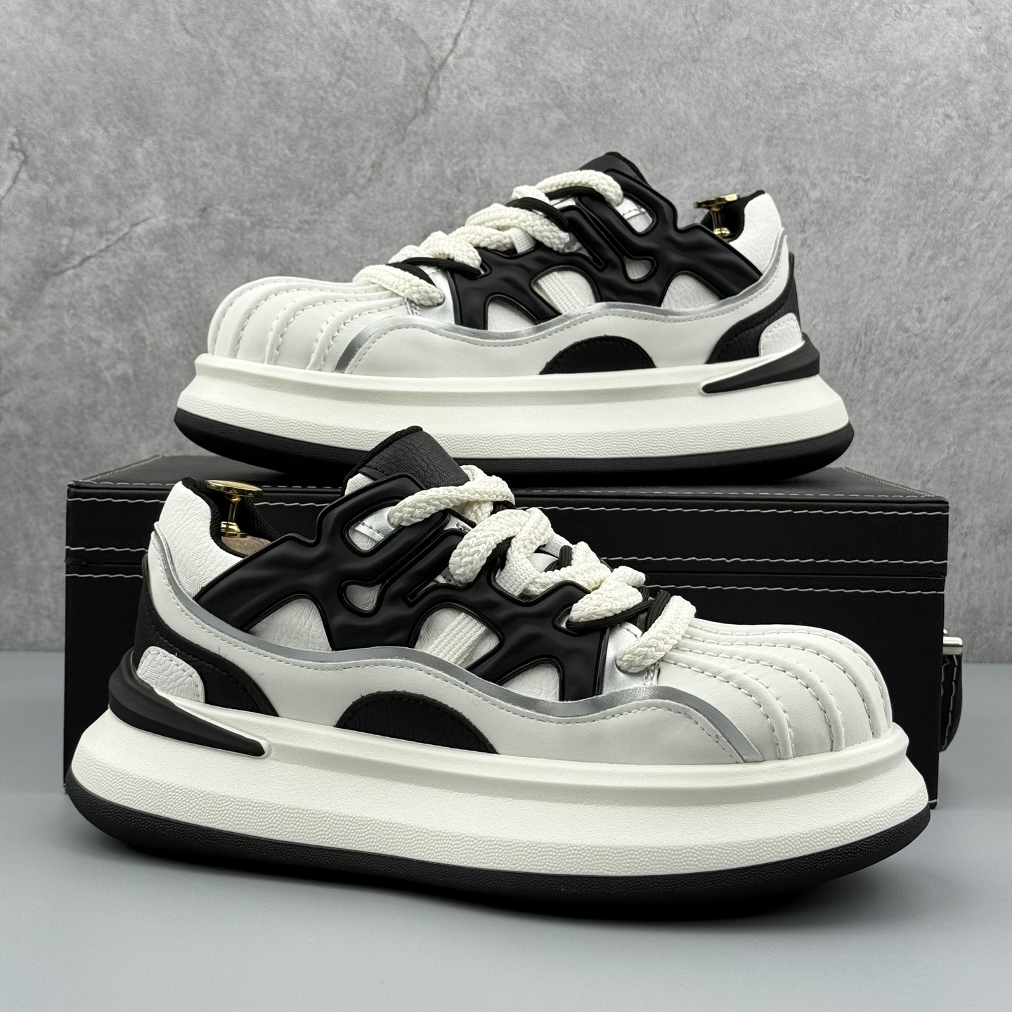 金标黑色贝壳鞋男鞋贝壳头小白鞋女2025新款厚底板鞋休闲运动鞋潮
