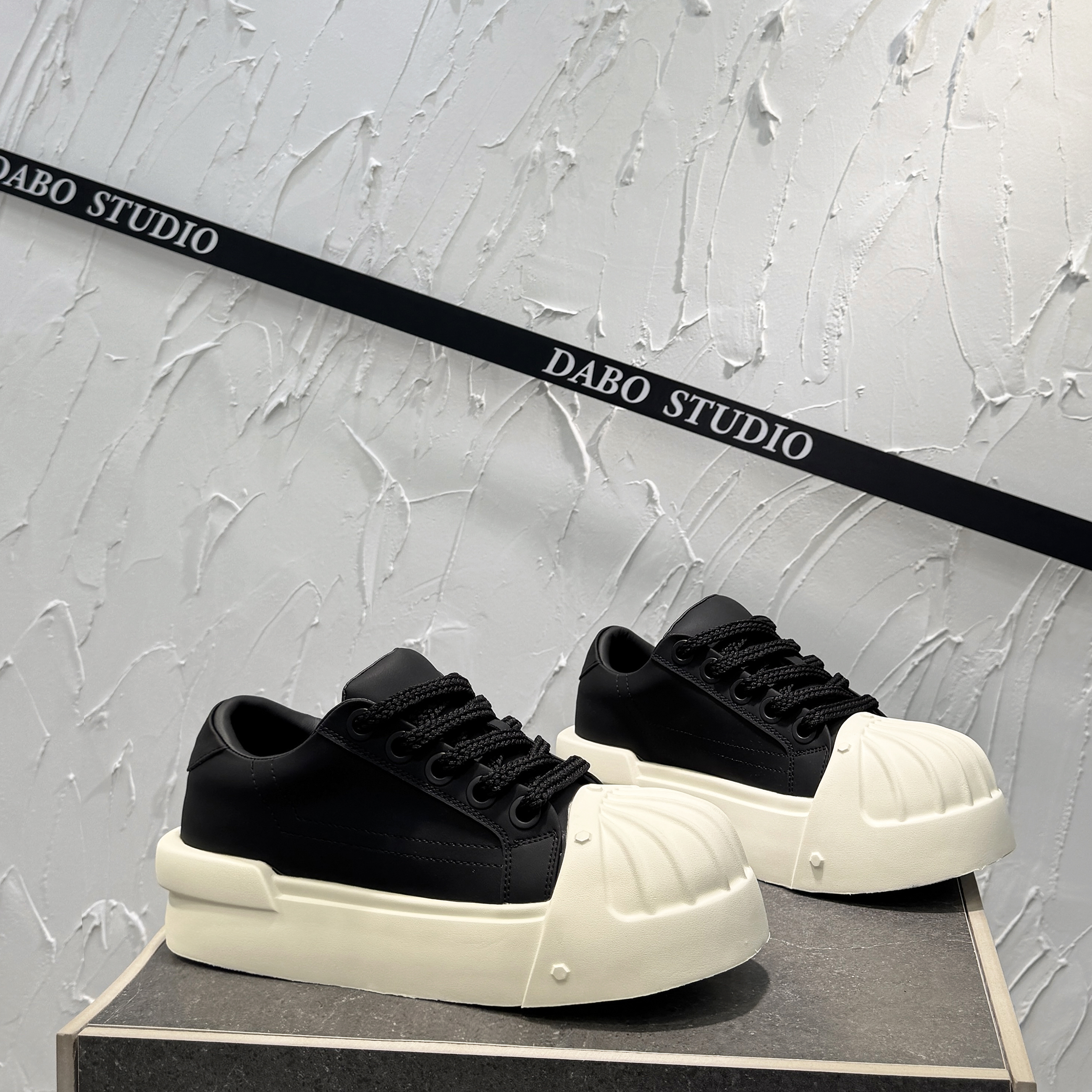 金标黑色贝壳鞋男鞋女贝壳头小白鞋2025新款厚底板鞋休闲运动鞋子