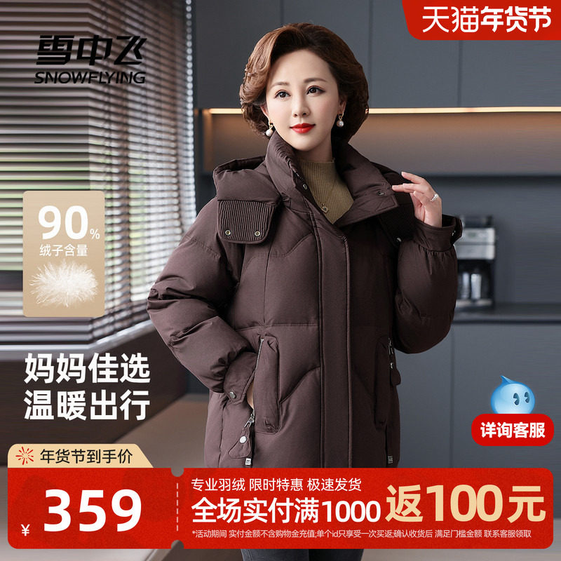 雪中飞2025冬新款女士羽绒服短款中老年优雅时尚大气保暖妈妈装