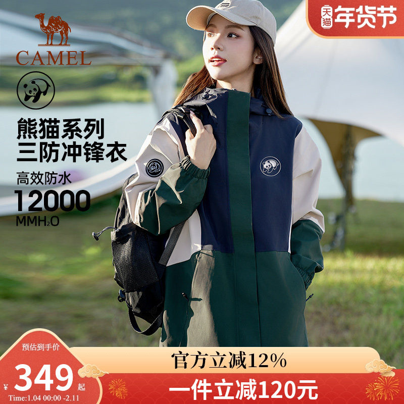 骆驼熊猫冲锋衣女冬季单层外套户外防水防风西藏旅游硬壳登山服男