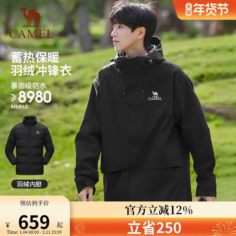 骆驼户外西藏旅游羽绒冲锋衣外套男三合一可拆卸防风防水登山服女