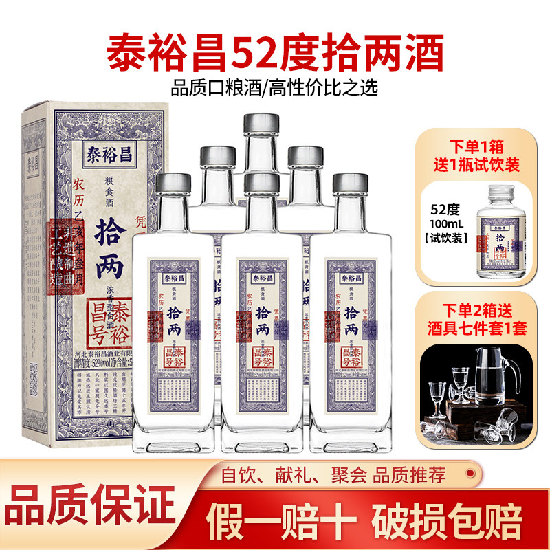泰裕昌酒拾两酒纯粮食酒浓香型白酒整箱特价6瓶十两盒装收藏送礼