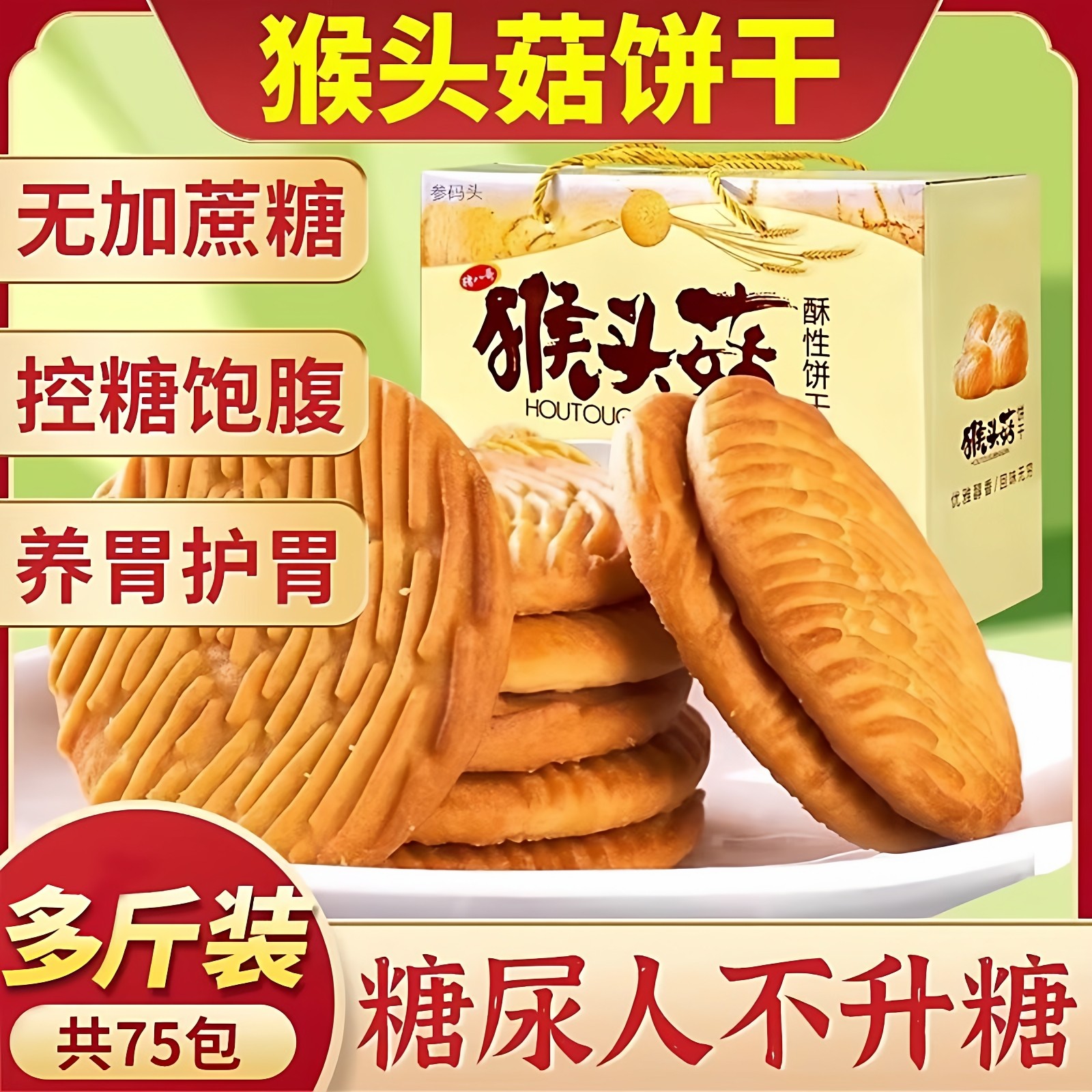 猴头菇无糖精代餐饼干适合中老年人吃的零食早餐营养胃糖尿人食品