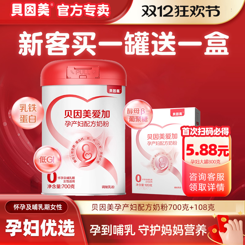买1发2贝因美爱加孕产妇配方奶粉700g克+189克孕妈妈含乳铁蛋白