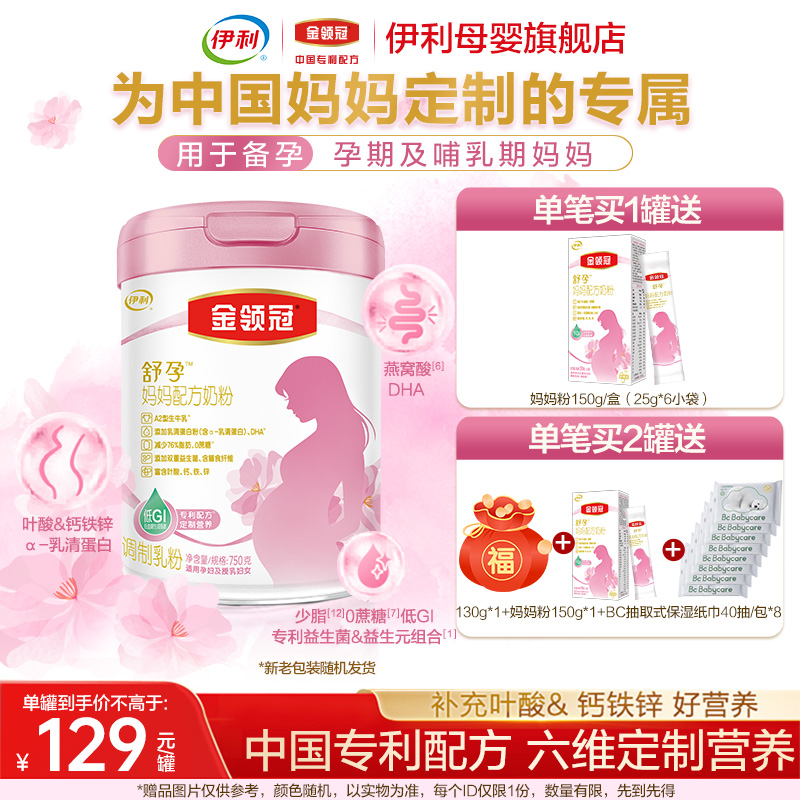 品牌新享】伊利金领冠舒孕 孕产妇奶粉孕期中晚孕妇妈妈750g罐装