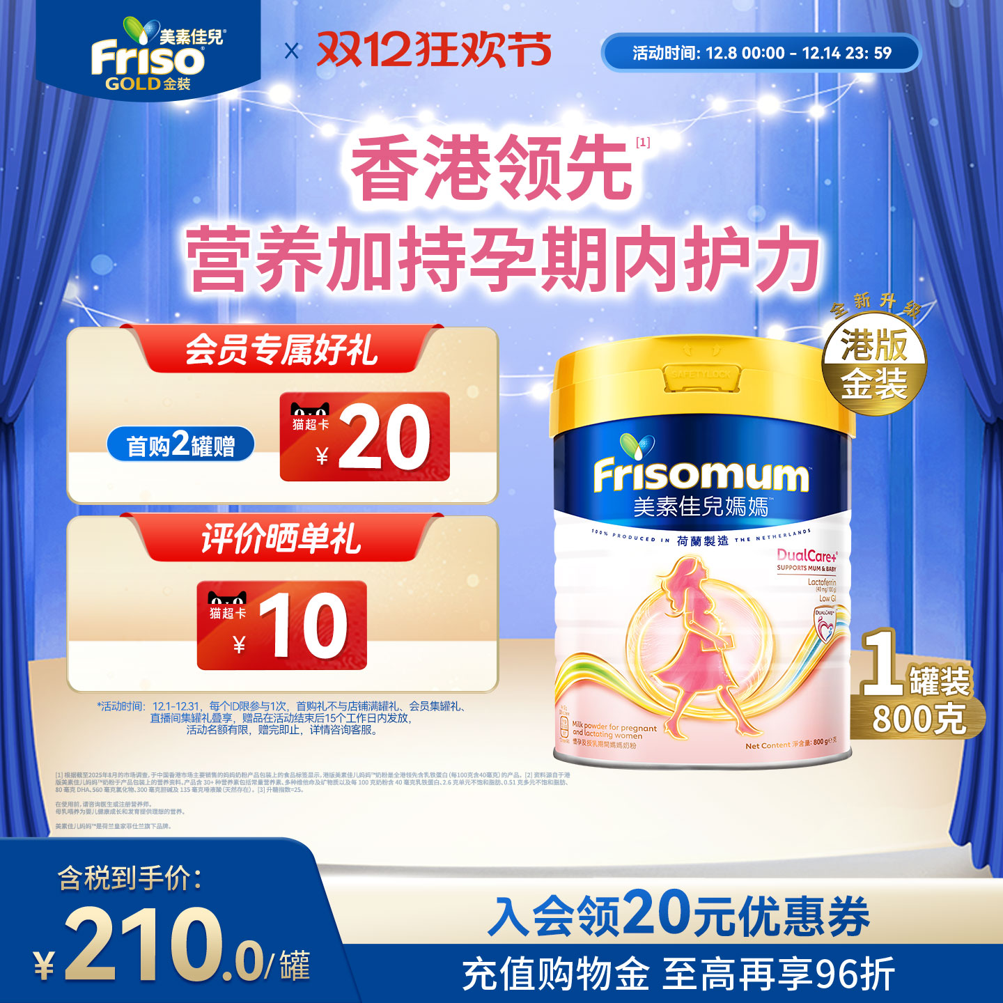 Friso全新升级港版美素佳儿低GI妈妈孕产妇配方奶粉800g 乳铁蛋白