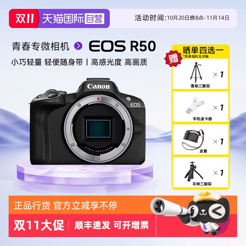 【自营】佳能R50微单数码相机高清4K视频学生家用旅游美颜照相机