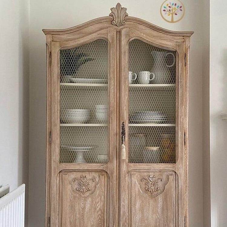 法式复古做旧实木雕花餐厅酒柜欧式法式餐边柜酒水展示柜整装家具