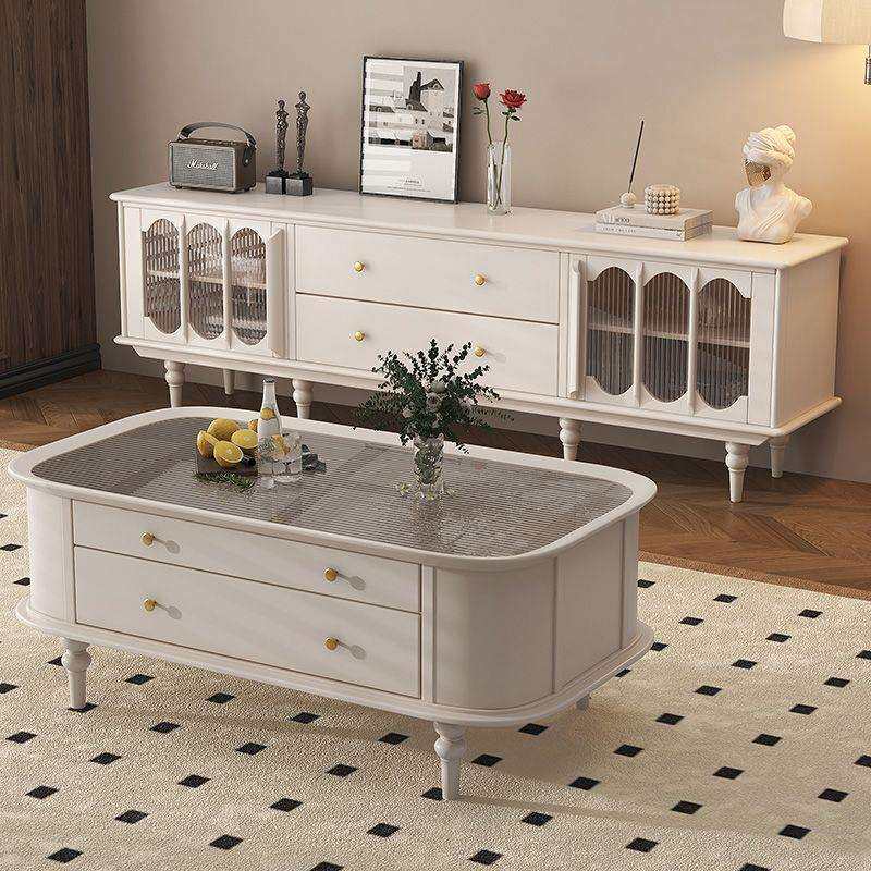 美式茶几实木客厅茶桌家用复古长方形茶台欧式储物收纳抽屉小户型