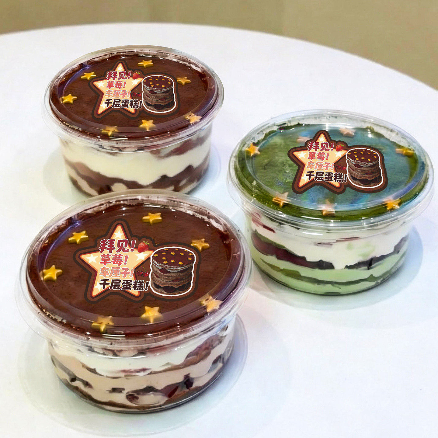 一碗千层蛋糕打包盒提拉米苏蛋糕榴莲水果草莓芒果烘焙蛋糕包装盒