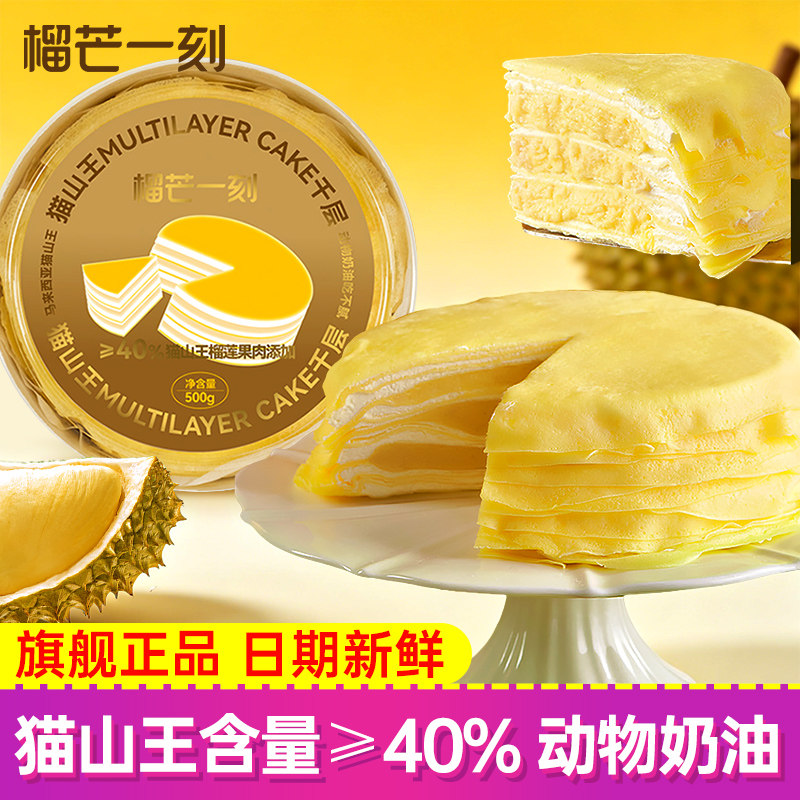 榴芒一刻马来西亚榴莲猫山王蛋糕榴莲千层蛋糕动物奶油下午茶糕点