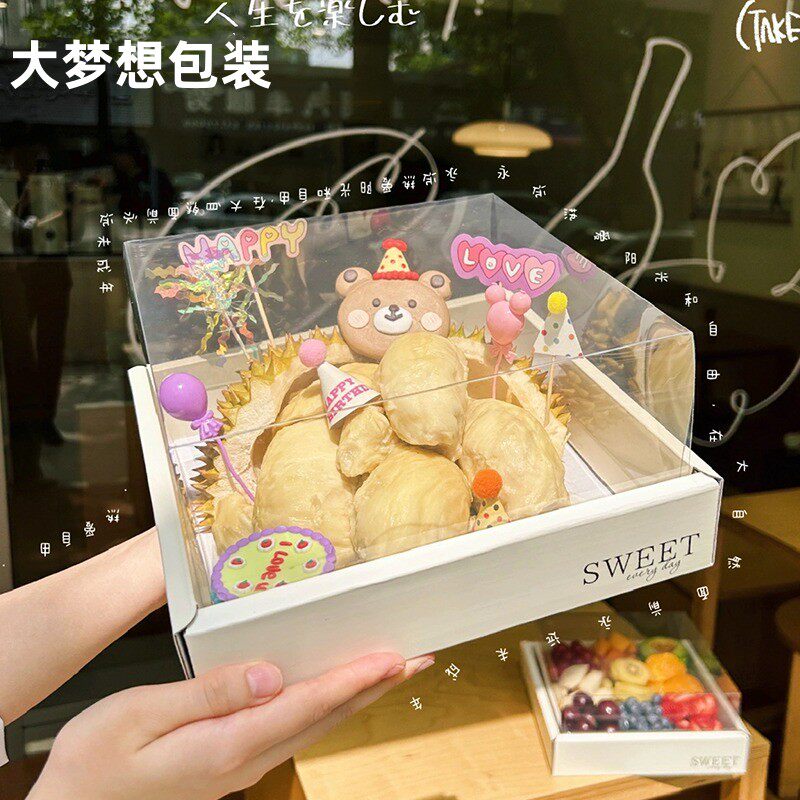透明盖手提鲜花水果包装盒通用果切创意包装盒蛋糕榴莲ins打包盒