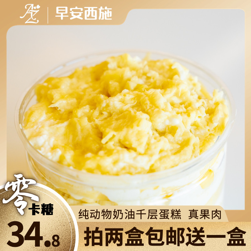 榴莲千层蛋糕爆浆奶油动物奶油40%榴莲果肉新鲜生日蛋糕榴莲糕点