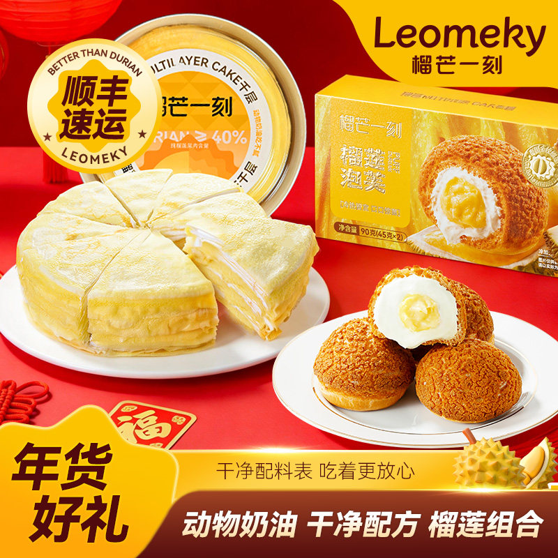 榴芒一刻抹茶榴莲千层蛋糕动物奶油抹茶蛋糕榴莲泡芙礼物甜品零食