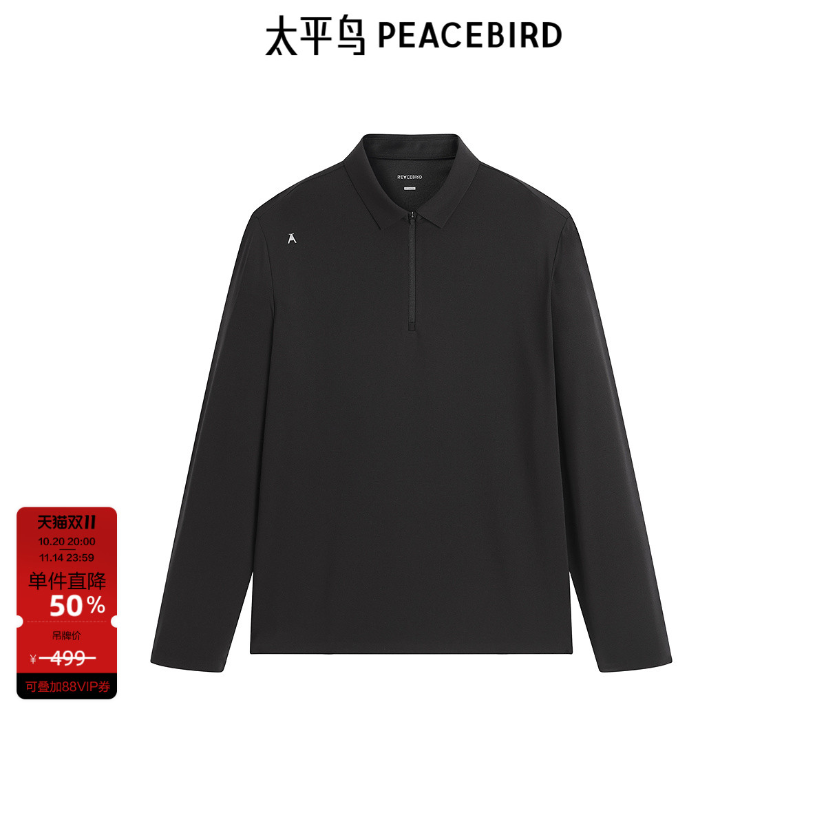 啄木鸟纯棉长袖t恤男中年爸爸秋装翻领上衣中青年男士打底衫薄t恤