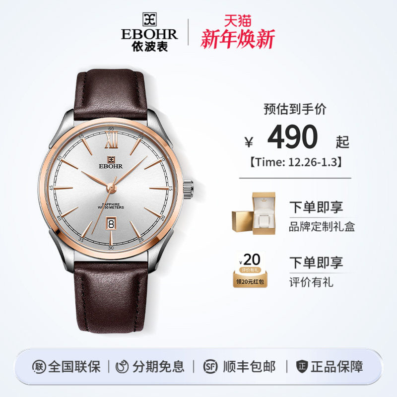 依波手表男表正品高级感绅士休闲皮带男款真皮防水男士手表5650