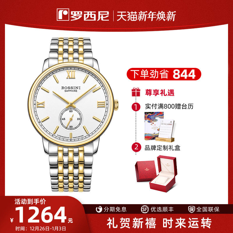 罗西尼手表男学生石英表正品双历简约休闲防水男表男士腕表618573