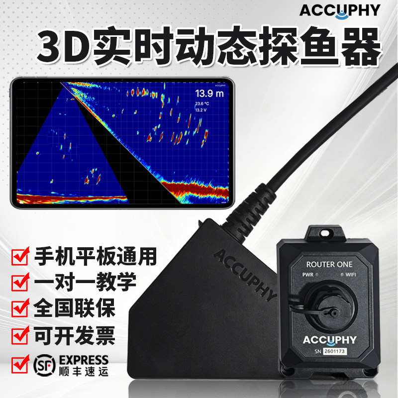 国产精相 Accuphy探鱼器3d实时动态声呐鱼探仪筏钓探鱼器全套装