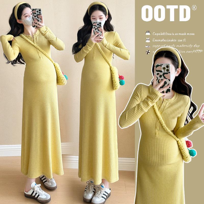 孕妇装秋季连衣裙2025新款时尚气质孕期穿搭修身显瘦打底针织长裙