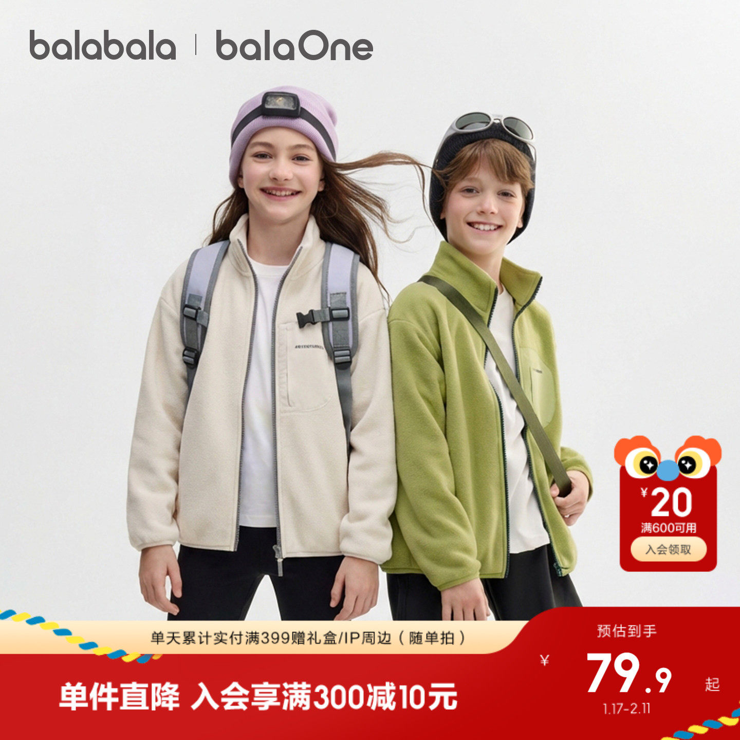巴拉巴拉童装儿童外套男童女童宝宝2026春秋装摇粒绒抗静电亲子装