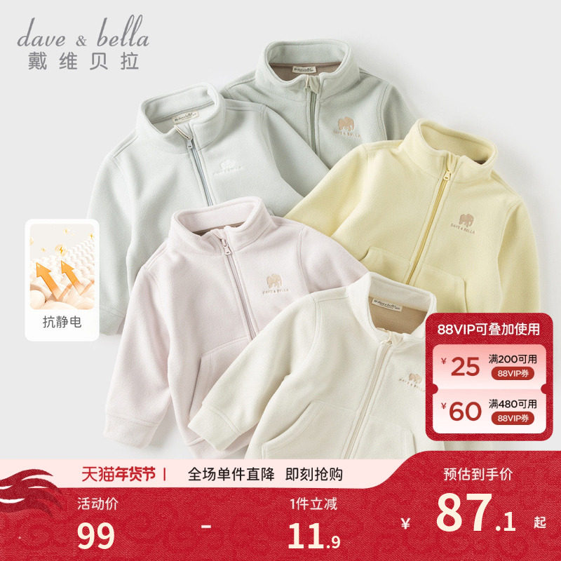 戴维贝拉儿童摇粒绒外套春装新款男童女童抗静电内胆宝宝A类上衣