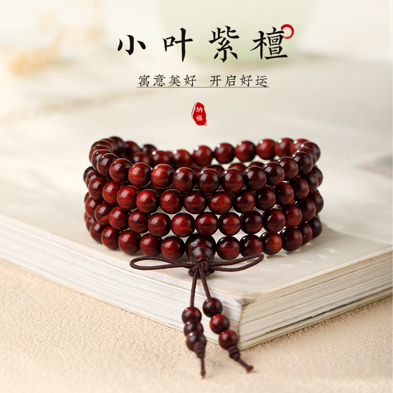 真品小叶紫檀手串本命年马年文玩木质佛珠108颗手串男士礼物女士
