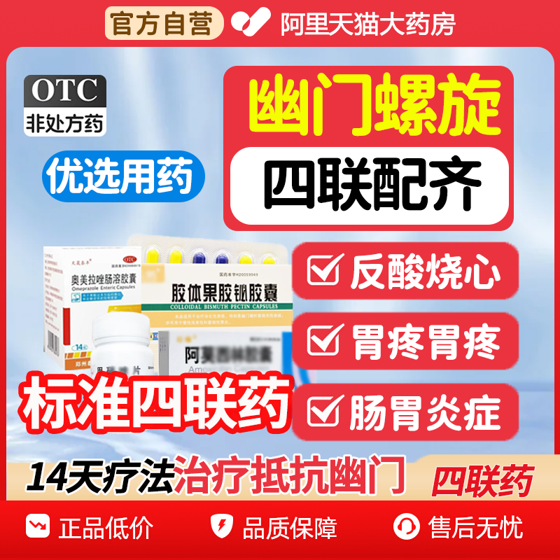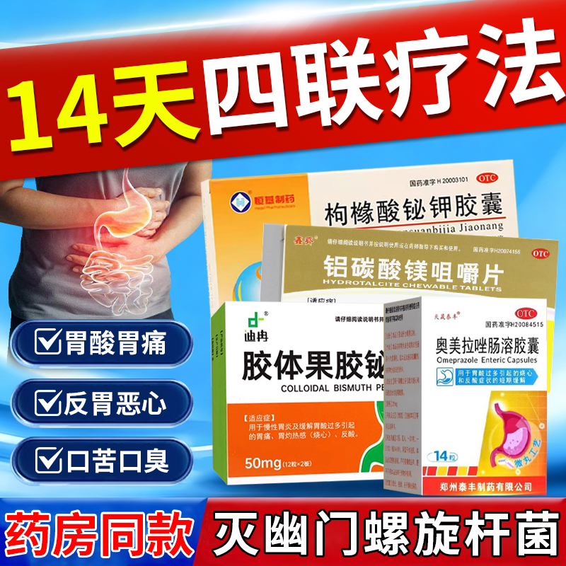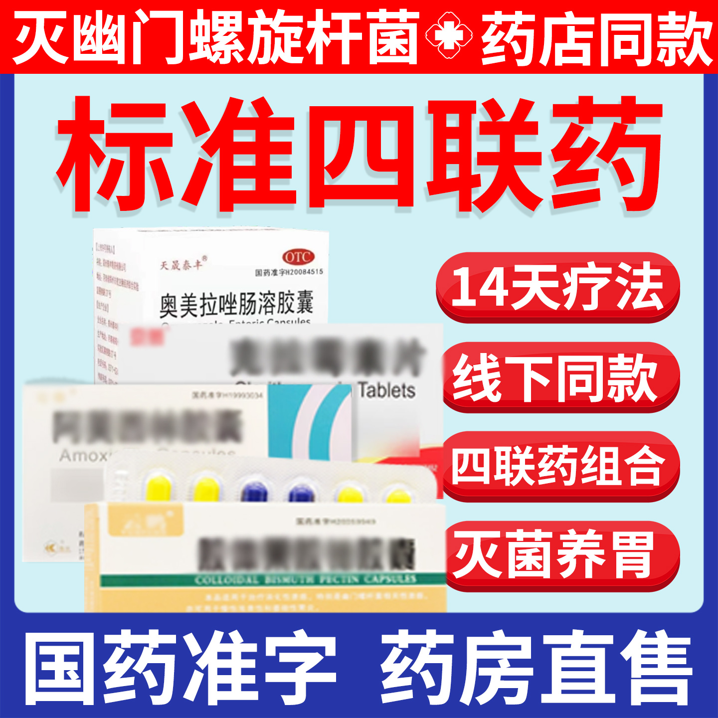 幽门螺旋杆菌四联专用药标准灭幽门口臭治疗胃痛药胃酸组合装正品