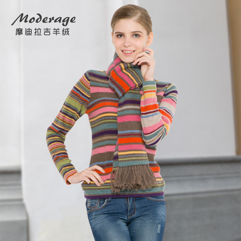 摩迪拉吉纯山羊绒秋冬保暖女士围巾女式多色彩条双层超长围巾披肩