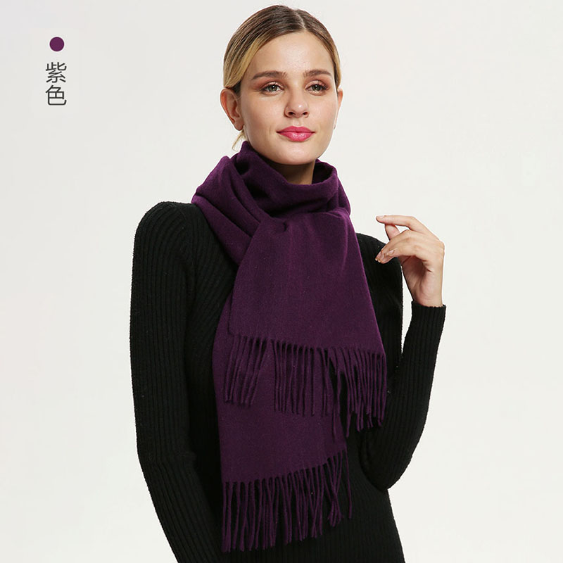 新款仿羊绒纯色深紫超大超长流苏款秋冬保暖加厚围巾空调披肩两用