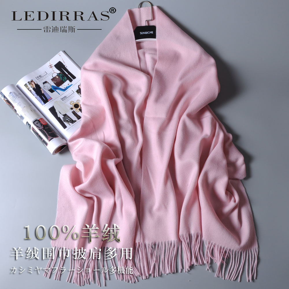 2017新款秋冬季羊毛超长加厚加大两用款女士纯羊绒披肩围巾粉红色