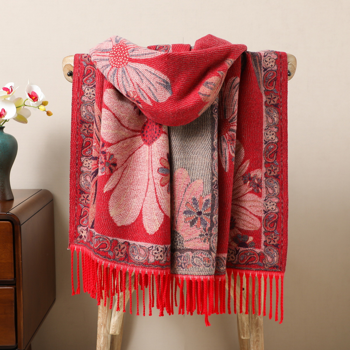 2025春季新款羊绒围巾大红男女披肩加厚超长百搭中国红羊毛围脖