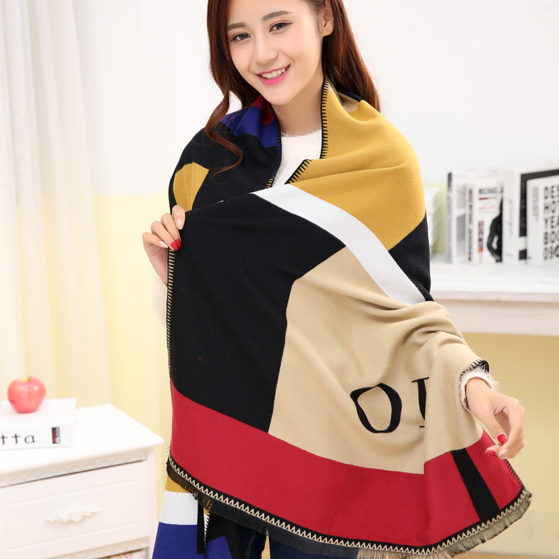 围巾女秋冬季OP仿羊绒字母撞色格子超长百搭2021新款大披肩围脖