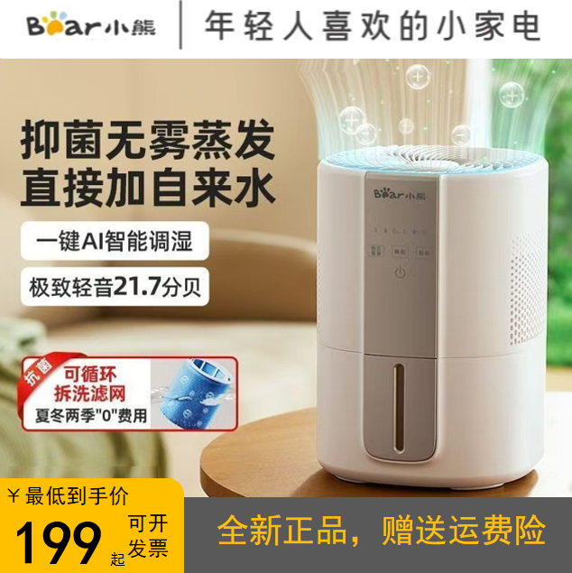 小熊无雾加湿器卧室4L家用静音孕妇婴儿蒸发空气大喷雾全新正品