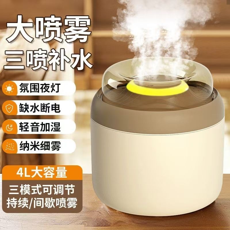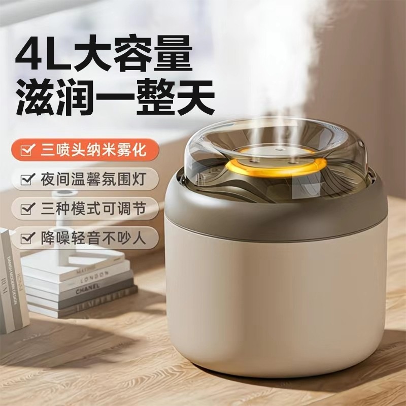 4L大容量加湿器卧室家用静音客厅大喷雾办公室桌面2025新款宿舍学生孕妇婴儿大雾量空气净化一体保湿机充电