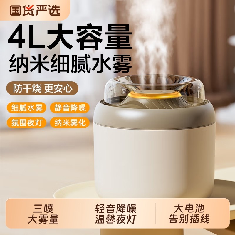 4L大雾量空气加湿器家用静音卧室办公室补水保湿大喷雾无线充电孕妇婴儿香薰机学生宿舍大容量夜灯雾化桌面