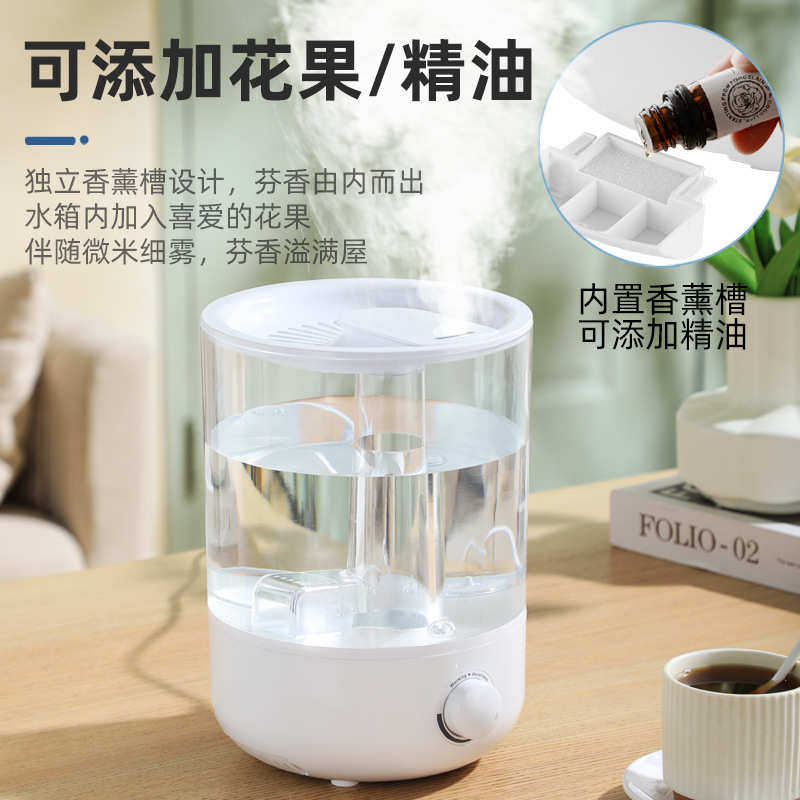 家用静音超声波加湿器4L大容量香薰办公室卧室爬宠植物厅宿舍学生
