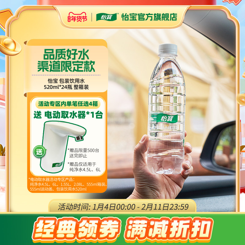 【520饮用水】新品怡宝包装饮用水520ml*24瓶饮用水非矿泉水