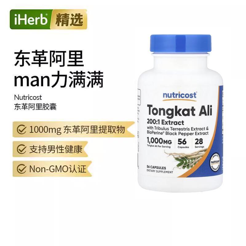 Nutricost东革阿里胶囊200:1提取物含刺蒺藜和黑胡椒男性健康