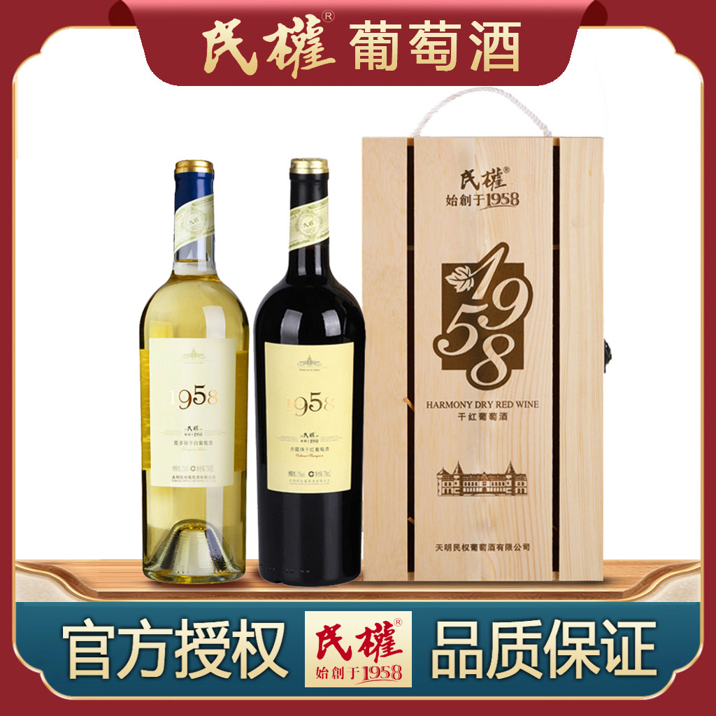 民权1958经典款黄标赤霞珠干红霞多丽干白组合750ml*2双支木盒