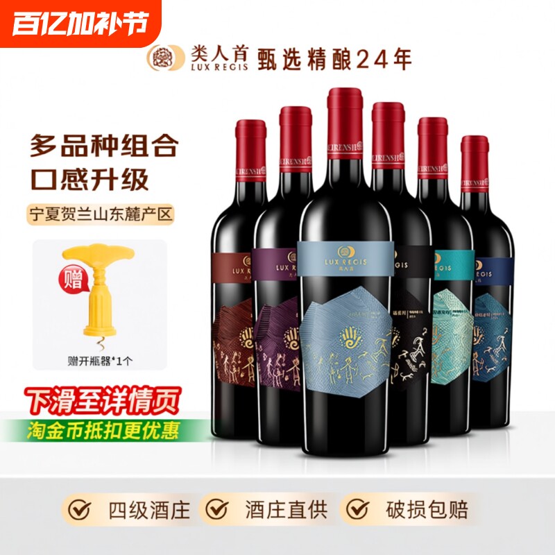 类人首 热卖年货宁夏红酒赤霞珠马瑟兰干红组合750ml*6支装葡萄酒