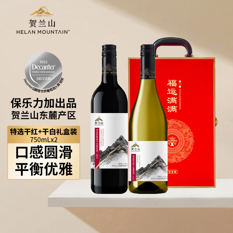 贺兰山葡萄酒特选霞多丽干白宁夏美贺庄园爱丝维娜雷司令干白组合