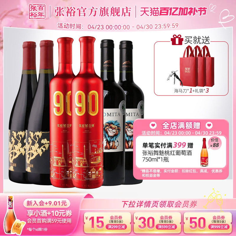 张裕官方6瓶组合套装 解百纳90正当红干红黑比诺魔狮进口红葡萄酒