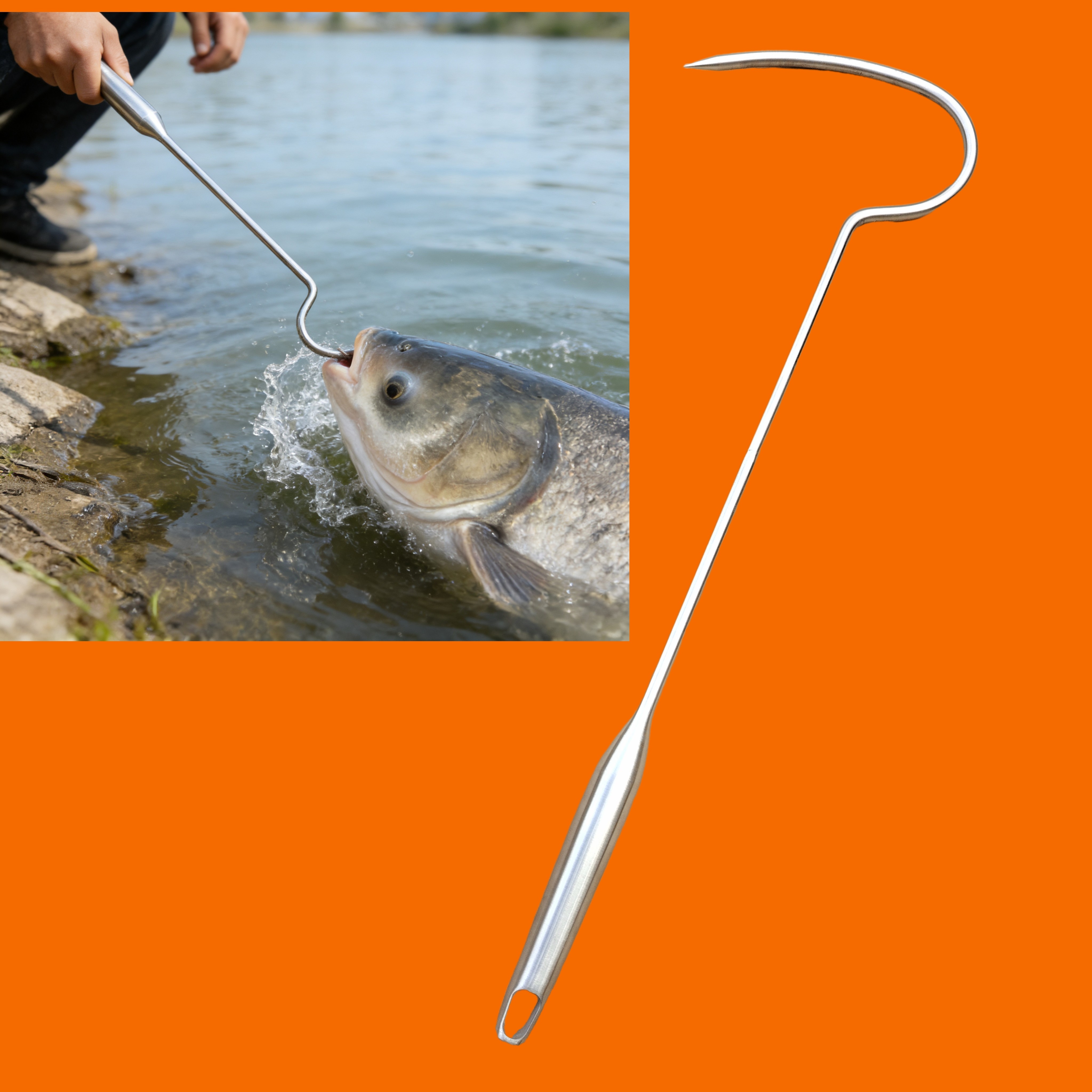 钩鱼器锚鱼搭钩捞鱼钩冰钓船钓刨钩控鱼器不锈钢头抄鱼钩钓鱼装备